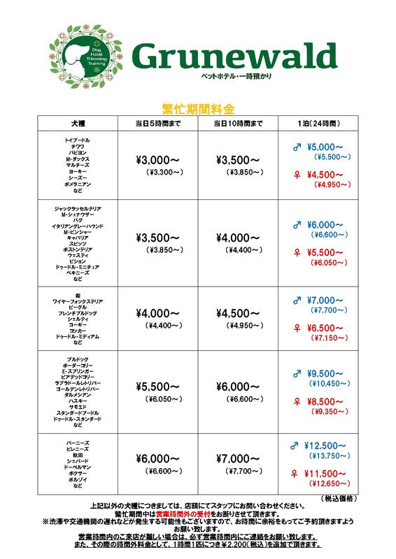 下記対象期間中のホテル・お預かり料金を繁忙期料金とさせて頂きます。
